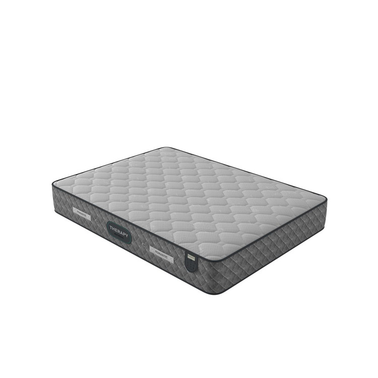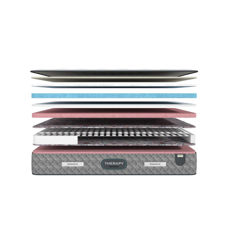 تشک تراپی از سری تشک های فنر متصل و دو طرف یکسان می باشد . فنر به کار رفته از نوع فنر میکرو بونل(دارای تعداد فنر بیشتر نسبت به فنر های مشابه) با مفتول منحصر به فرد است که با یک لایه ضخیم و با کیفیت اسفنجی دور تا دور اسکلت تقویت شده است که باعث افزایش طول عمر دیواره های تشک می شود . همچنین به دلیل به کارگیری از فوم های ساپورتر در بین تمامی لایه های فنر حالت ارتجاعی آن جهت حمایت از ستون فقرات تا حد بسیار زیادی کنترل می گردد. رویه اسکلت فنر این تشک یک لایه نمدی فشرده با گرماژ بالا به کار رفته که باعث می شود وزن بدن در سطح تشک تقسیم شود در همین راستا شما فنر ها را کمتر حس می کنید. بعد از لایه نمدی یک لایه اسفنجی با دانسیته بالا به کار رفته که راحتی شما را تضمین می کند. تشک تراپی از دسته تشک های فنری و نسبتا سفت به حساب می آید . از دیگر لایه های تشک تراپی میتوان به لایه اسفنجی جهت سهولت بیشتر ، لایه الیافی ترموفیوز جهت گردش هوای سطح تشک و پارچه گردباف سه لایه ضد تعریق، لطیف، آنتی باکتریال و ضد حساسیت اشاره کرد.
