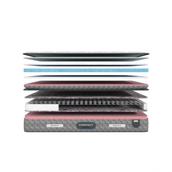 تشک کامپکت ازش سری تشک های فنر متصل و یک طرفه (پد دار)میباشد . فنر بکار رفته از نوع فنر میکرو بونل(دارای تعداد فنر بیشتر نسبت به فنر های مشابه) با مفتول منحصر به فرد است که با یک لایه ضخیم و با کیفیت اسفنجی دور تا دور اسکلت تقویت شده است که باعث افزایش طول عمر لبه های تشک میشود. روی اسکلت فنر این تشک یک لایه نمدی فشرده با گرماژ بالا به کار رفته که باعث میشود وزن بدن در سطح تشک تقسیم شود در همین راستا شما فنر ها را کمتر حس می کنید . داخل پد تشک کامپکت اسفنج با دانسیته بالا و اسفنج یورولوکس به کار رفته است که به نرمی و راحتی تشک می افزاید علاوه بر این بدن را در حالت استاندارد قرار میدهد و از قسمت کمر و ستون فقرات حمایت می کند. از دیگر لایه های تشک کامپکت میتوان به لایه اسفنجی و لایه الیافی ترموفیوز جهت گردش هوای سطح تشک و پارچه گردباف سه لایه ضد تعریق، لطیف، آنتی باکتریال و ضد حساسیت اشاره کرد.