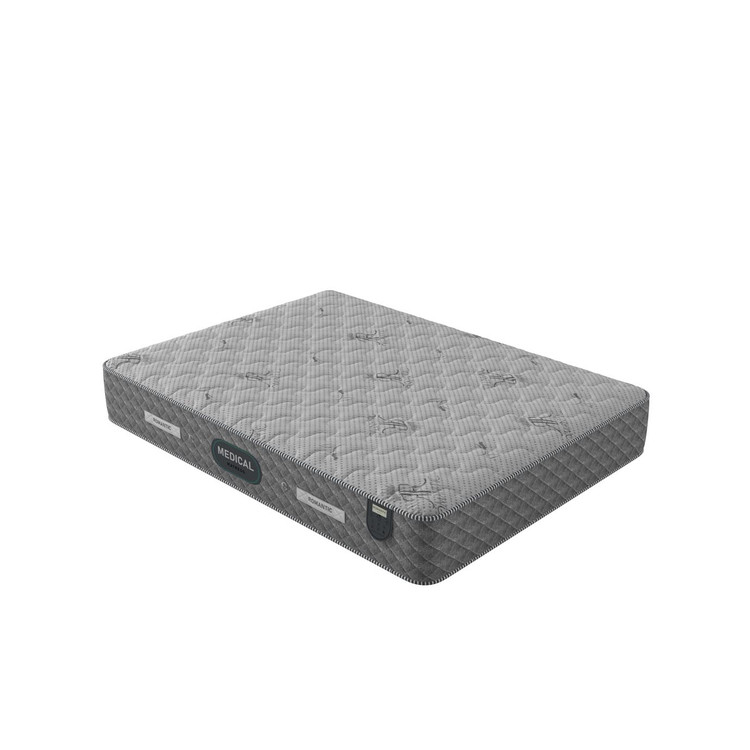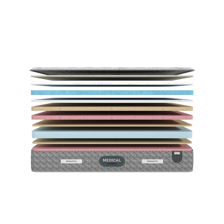 تشک طبی مدیکال از سری تشک های بدون فنر (تمام اسفنجی) و دو طرفه است تشک های بدون فنر به نام تشک های طبی شهرت دارند . مدیکال تشکی کاملا طبی و سفت می باشد . هسته مرکزی تشک مدیکال از جنس ریباند با تراکم بالا می باشد به همین خاطر این تشک نسبت به تشک های فنری و پاکت اسپرینگ تشکی سفت تر با قابلیت ارتجاعی کمتر است . روی هسته ریباندی این تشک یک لایه اسفنجی با دانسیته بالا و ضخیم به کار رفته و سپس یک لایه اسفنجی دیگر از نوع یورولوکس برای راحتی بیشتر استفاده شده است .طرف دوم از لایه یورولوکس برخوردار نیست و به همین خاطر سفت تر می باشد این تشک برای افراد با وزن بالا و یا کسانی که به دنبال تشک تمام طبی وسفت هستند گزینه ی بسیار مناسبی است تشک مدیکال سفت ترین رمانتیک میباشد از دیگر لایه های تشک مدیکال میتوان به لایه اسفنجی جهت سهولت بیشتر لایه الیافی ترموفیوز جهت گردش هوای سطح تشک و پارچه گردباف سه لایه ضد تعریق، لطیف، آنتی باکتریال و ضد حساسیت اشاره کرد.
